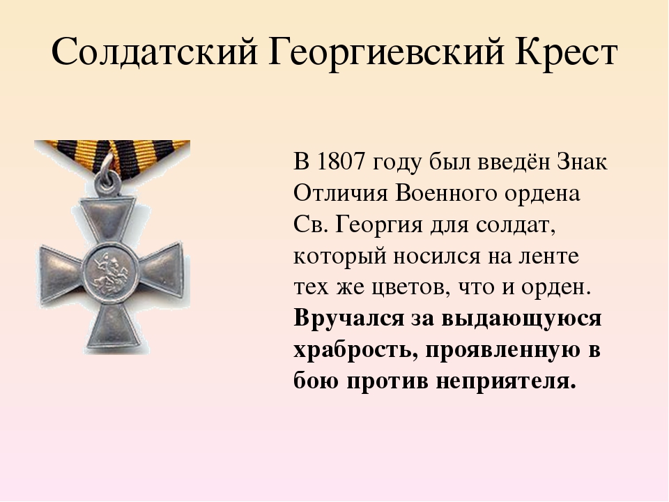 25 февраля 1807 года был учрежден Георгиевский крест. В один из первых дней января месяца года 1807 на стол Императора и Самодержца Российского Александра I легла записка, в которой говорилось о необходимости учредить «5-й класс или особое отделение Военного ордена Св. Георгия для солдат и прочих нижних воинских чинов… который может состоять, например, в серебряном кресте на Георгиевской ленте, вдетой в петличку». 25 февраля 1807 был издан манифест Александра I, который утвердил награду для нижних чинов «за неустрашимую храбрость». При этом предусматривалось, что награждать будут «с некоторой разборчивостью», то есть с учетом действительных заслуг. В манифесте прописали все, - и порядок награждения, и условия для вручения, и внешний вид. Новая награда повторяла орден святого Георгия как внешним видом, так и условиями для награждения. Изначально награда была без номера, - вручалась она не так уж и часто, а вот когда число награжденных стало увеличиваться (поводов для вручения военных наград в то время было хоть отбавляй), георгиевские кресты стали нумеровать. Первым, кто получил солдатского Георгия стал унтер-офицер Митрохин. Вскоре началась Отечественная война 1812 года и количество награжденных по понятным причинам выросло. В 1813 году солдатская награда была вручена графу Милорадовичу, который на момент награждения был генералом от инфантерии. Знак отличия вручали не только военным: мещанин Герасимов стал первым из гражданских, представленных к награде. Правда, в отличие от военных, гражданские лица после награждения не могли именоваться «кавалерами знака отличия». При новом императоре, Николае Первом, был немного изменен статут ордена Святого Георгия. Изменения коснулись и условий награждения нижних чинов. Теперь награду жаловать могли и командующие армиями, и командующие отдельными корпусами. Награждать стали почти без проволочек. Третье награждение теперь позволяло получить максимальную прибавку к жалованию, а сама награда могла носиться на роскошном банте цветов георгиевской ленты. В 1844 году ввели кресты для нехристиан, прежде всего это касалось мусульман – изображение святого Георгия заменили на вполне нейтральный герб Российской империи. Еще через 12 лет ввели степени – их стало сразу четыре, при этом кресты первых двух классов были изготовлены из золота, а последние – из серебра. В 1913 году было введено пожизненное денежное поощрение кавалерам: от 36 рублей за четвертую степень, до 120 рублей за первую. В этом же году произошло последнее изменение статута: награда стала официально называться Георгиевским крестом и могла вручаться посмертно. «Нехристианской» версии теперь уже не было – на все кресты вернули изображение святого Георгия. Георгиевский крест никогда не снимался. Награда просуществовала до 1917 года. А спустя 75 лет Георгиевский крест возвратился в наградную систему нашей страны. Для наших уважаемых ветеранов по внутреннему 55 телеканалу Пансионата состоится трансляция исторического документального фильма «Георгиевский Крест - История легендарной награды Российской Империи».
