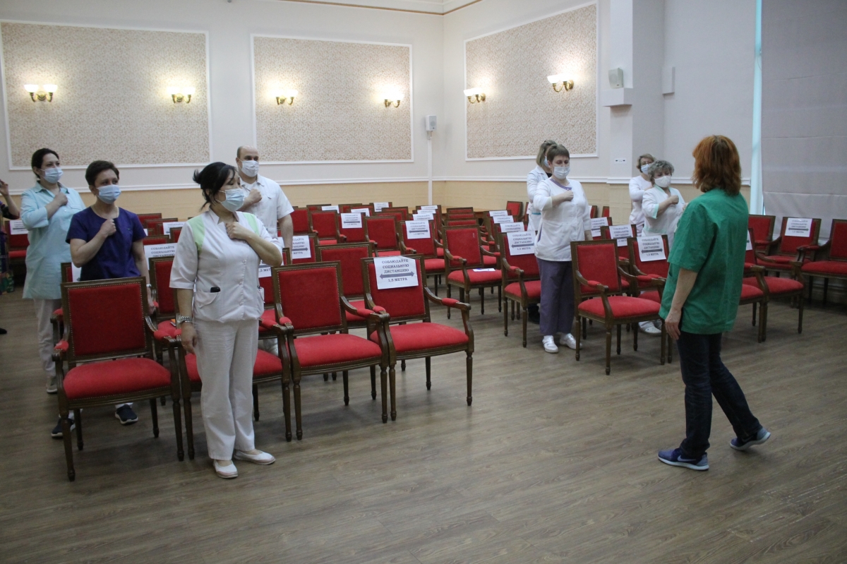 Сегодня у медиков пансионата «Коньково» опять была учеба. Они практиковались на еженедельных занятиях по коммуникативным навыкам и специфике общения с получателями услуг.