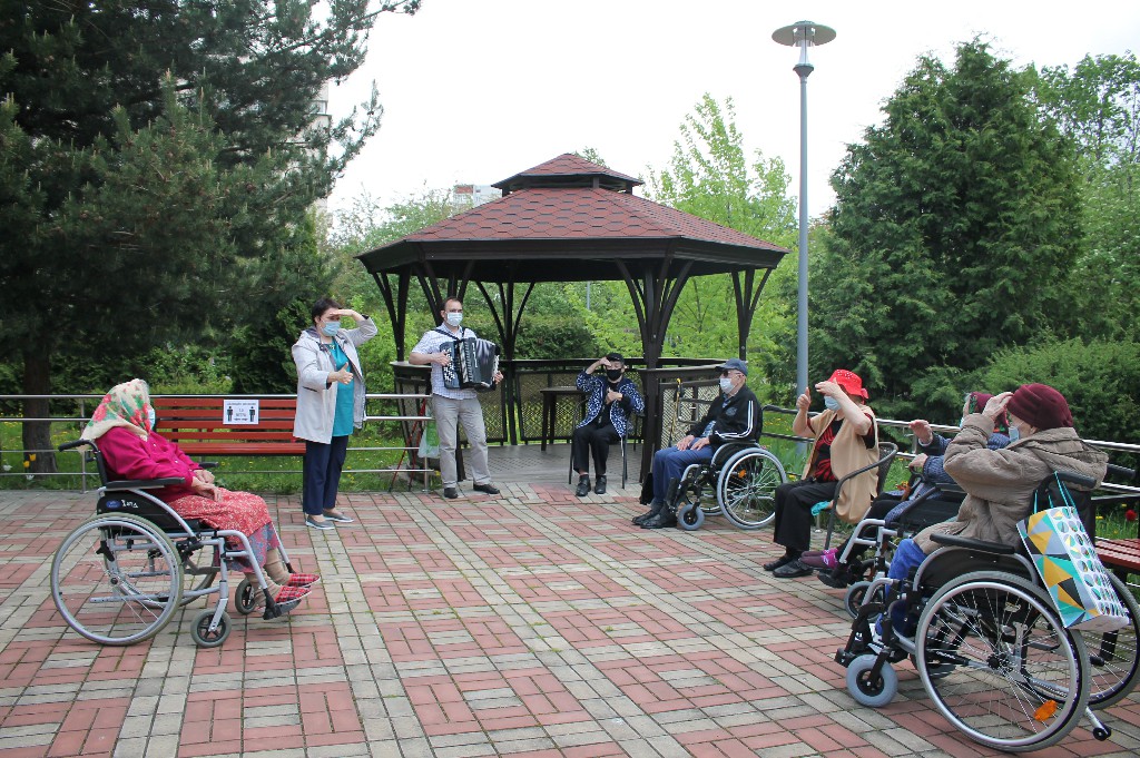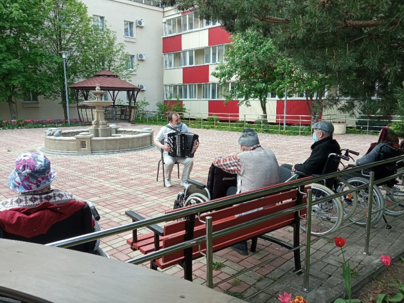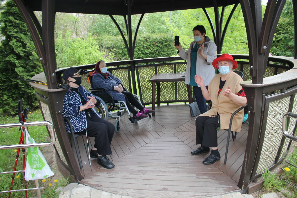 В апреле в пансионате «Коньково» возобновились групповые занятия с ветеранами. Если позволяет погода, в беседках и в зеленой зоне территории пансионата проводятся коммуникативный тренинг и психогимнастика – с элементами дыхательных практик и нейробики, музыкальная терапия для поднятия настроения и двигательной активности. После завершения занятий участники не хотят расходиться и устраивают обсуждения на политические темы. Завязываются новые дружеские контакты, предлагаются новые идеи для совместного досуга, и наши ветераны снова ощущают вкус к жизни.